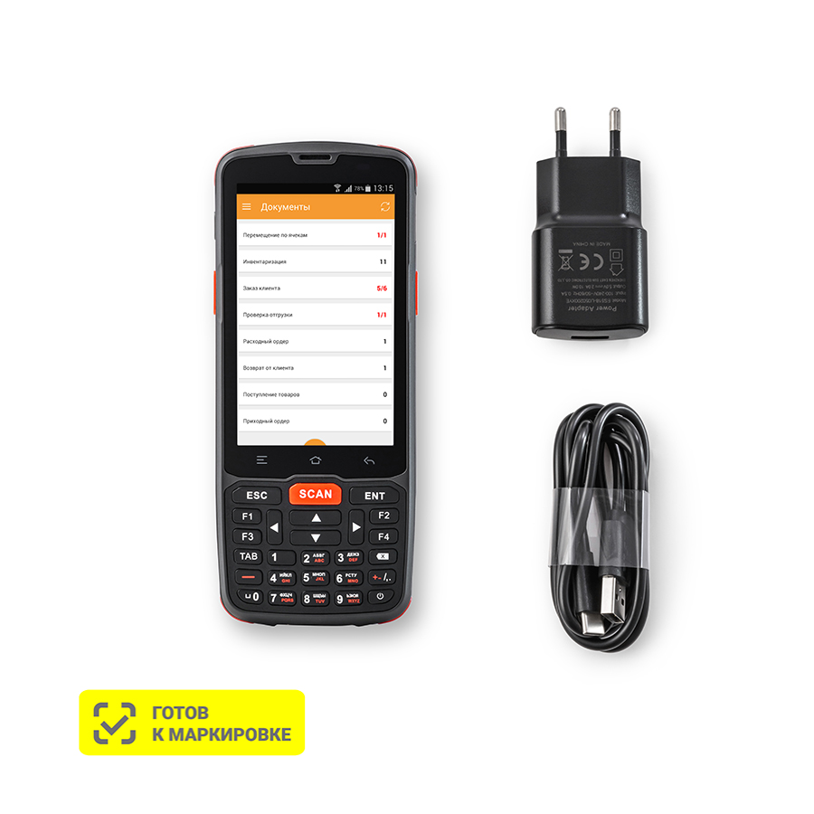 Комплектация ТСД, АКБ, БП, кабель Type C - USB 2.0, ремешок